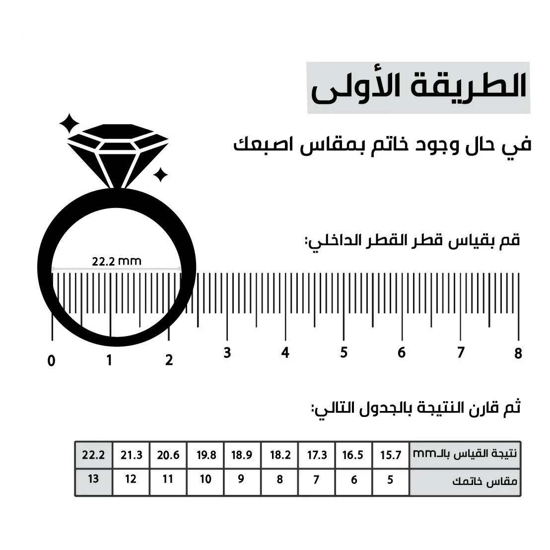 لمــعرفة قـياسـك المـناسب للـخاتم الرجاء استخدام هذه الطريقة