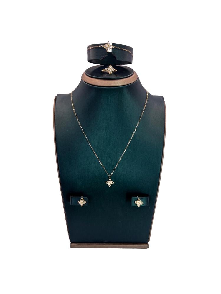 طقم من الذهب اللامع عيار 18 / 18K الجميل . في الراقي للذهب و المجوهرات نهتم بأدق التفاصيل و نواكب الموضة و الأشكال المطلوبة ونوفرها لكم على طبق من ذهب.